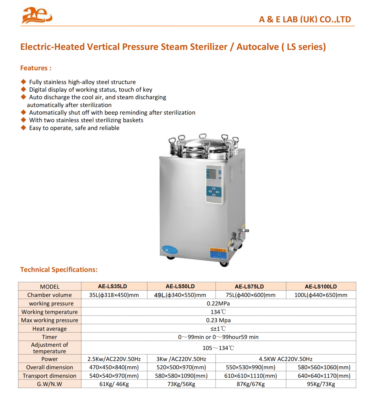 เครื่องนึ่งฆ่าเชื้อ Autoclave, AE Model