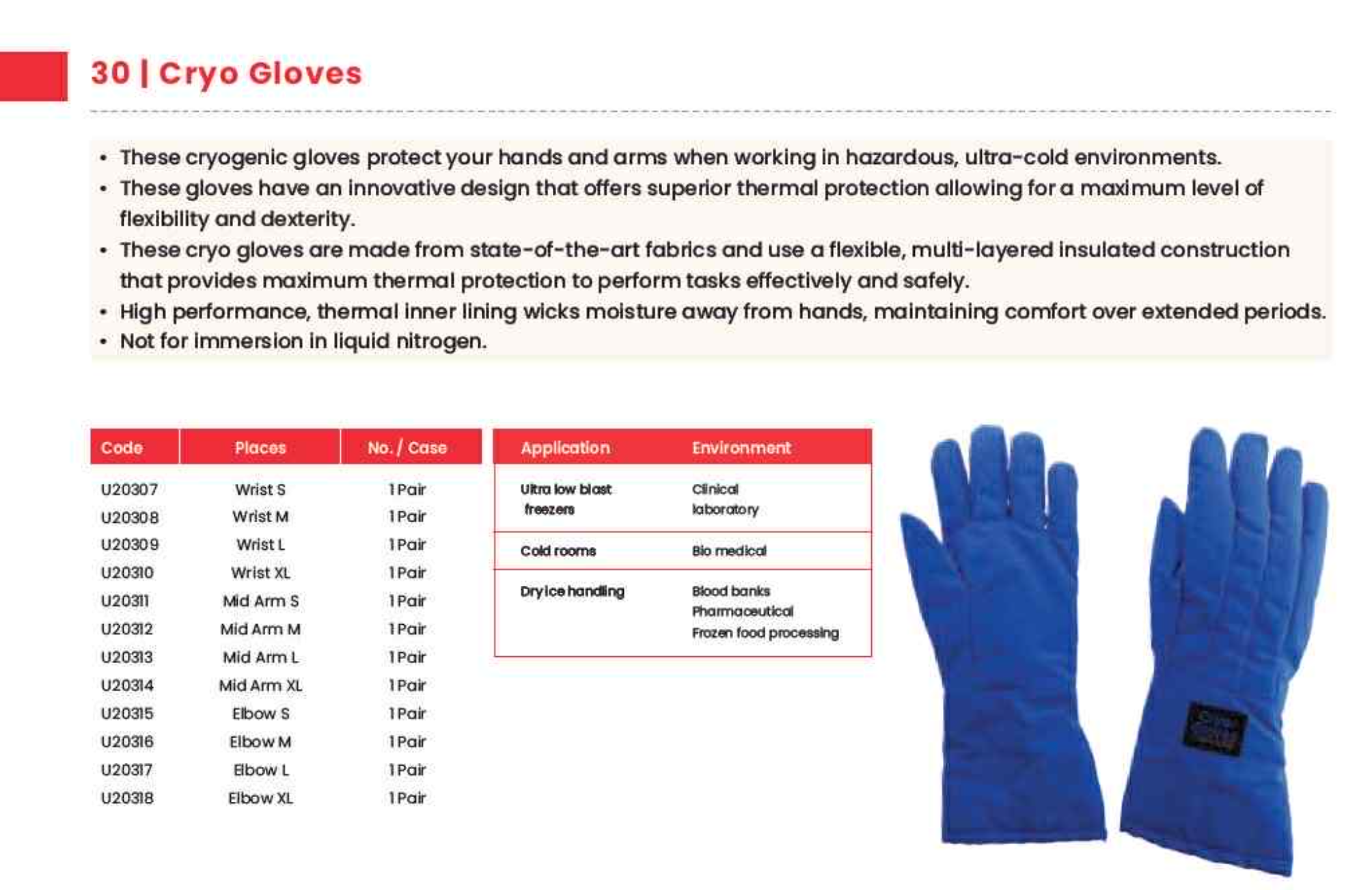 ถุงมือกันความเย็น Cryo Gloves ทนอุณหภูมิ -196 C (1 คู่)
