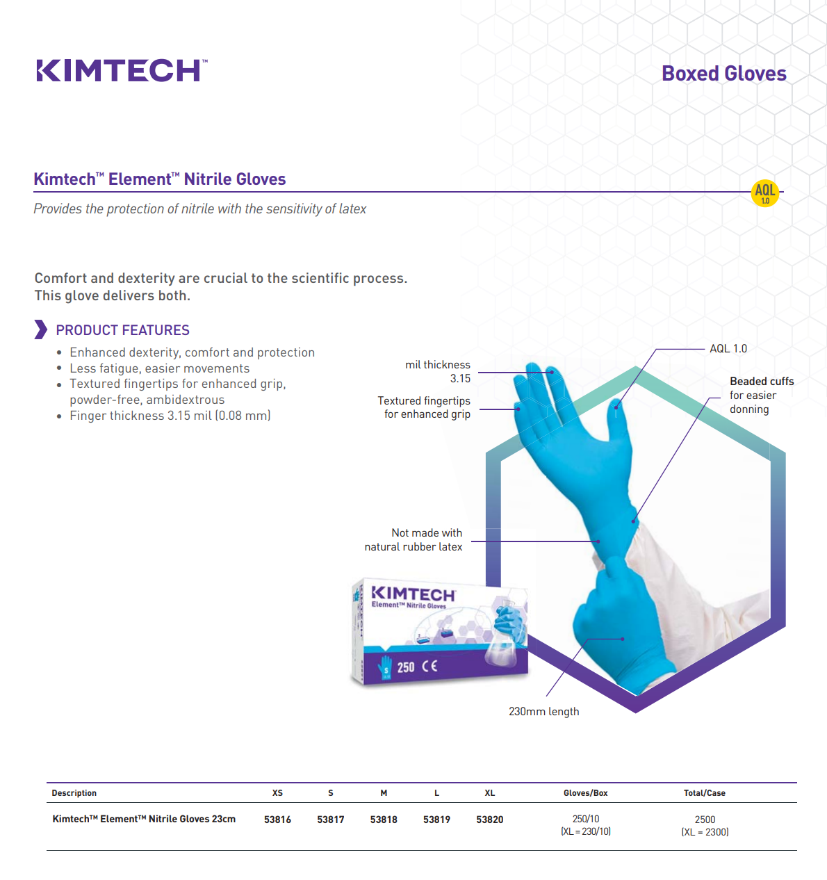 Kimtech-Element Blue Nitrile Glove (250ชิ้น/กล่อง)