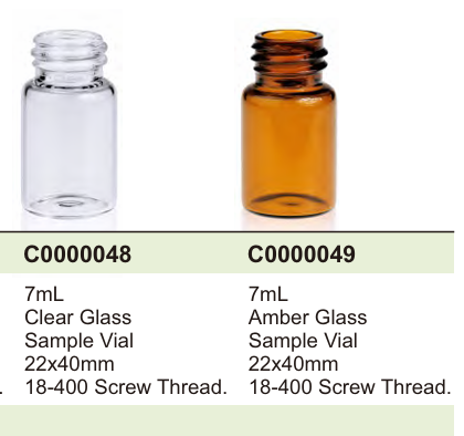 7mL, Clear Glass, Storage Vial, 22*40mm 18-400 Screw Thread.100PCs/PK